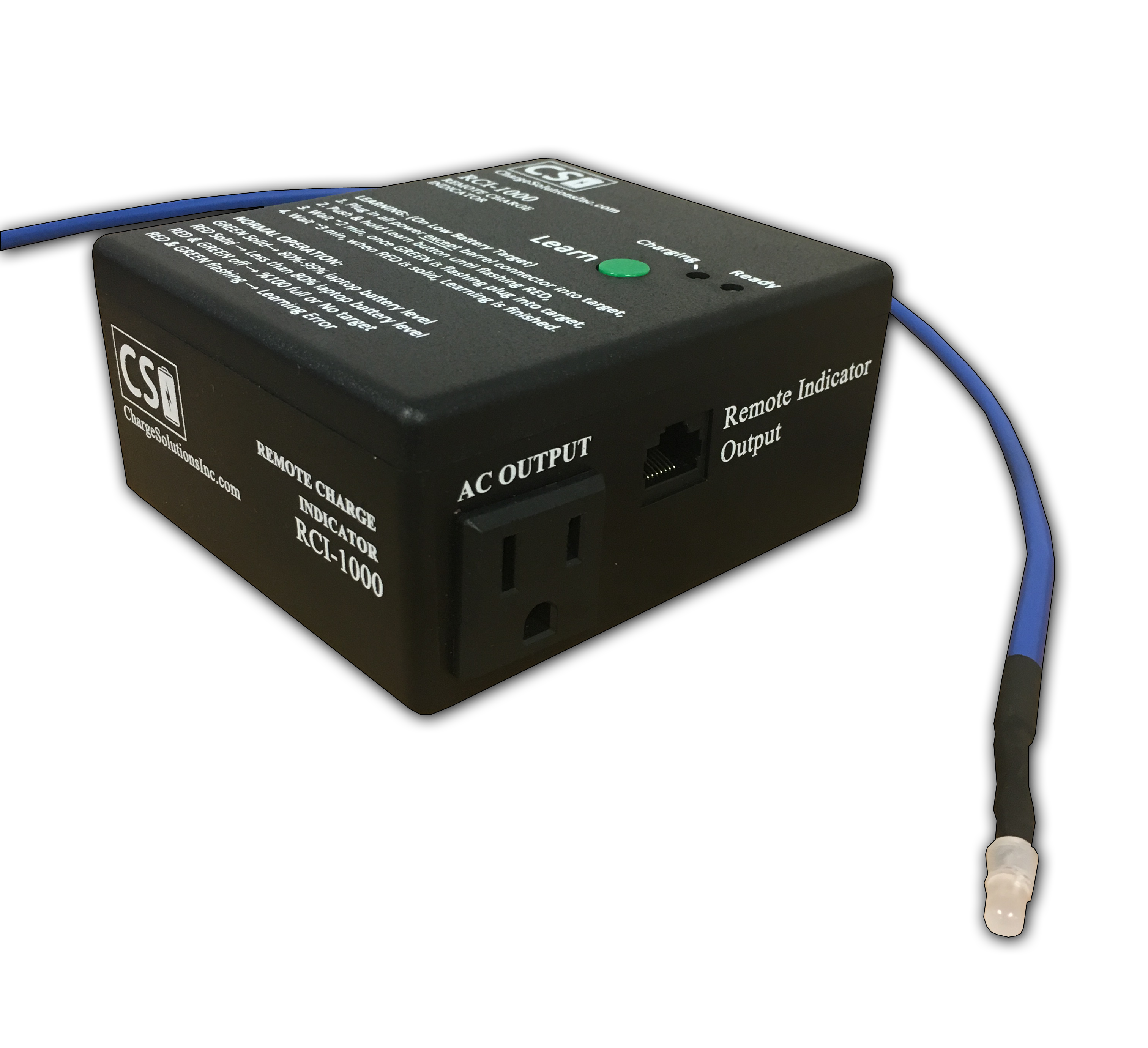 The RCI-1000 allows remote indication of battery charge level of devices being charged in hard to see or inaccessible enclosures. You simply plug your device into the front of the RCI-1000 and the back of the RCI-1000 has and AC inlet connector that plugs into a standard 120VAC outlet or power strip. The indicators, both on the device and on a remote indicator cable with RED/GREEN LEDs will illuminate RED when charging, and GREEN when the device being charged is within 80% of full.